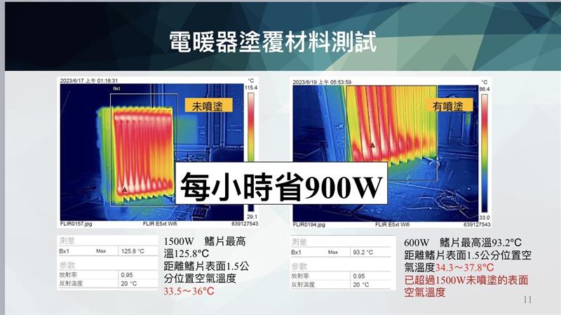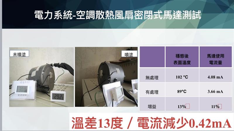 我們利用奈米技術製造的隔熱塗料,能顯著降低熱源傳導,效果驚人: