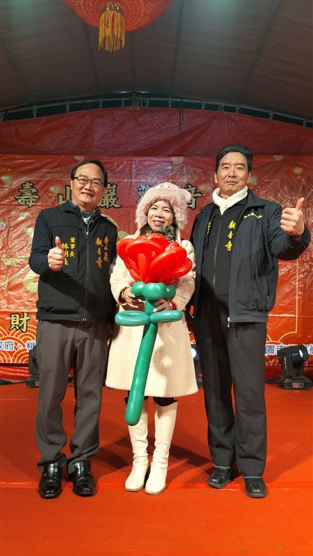 薛仁岳里長特別身著財神爺服裝,無疑地成為了全場的焦點,讓現場氣氛嗨到了最高點,婦女會的秋琴理事長,她不僅熱心參與,更是積極地扮演起助手的角色,她的熱情和活力感染了在場的與主持人默契十足人使得這次活動不僅充滿了歡笑,更增添了一份特別的意義,使得整個活動充滿了溫馨與快樂。