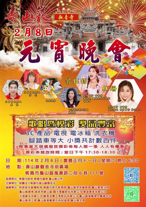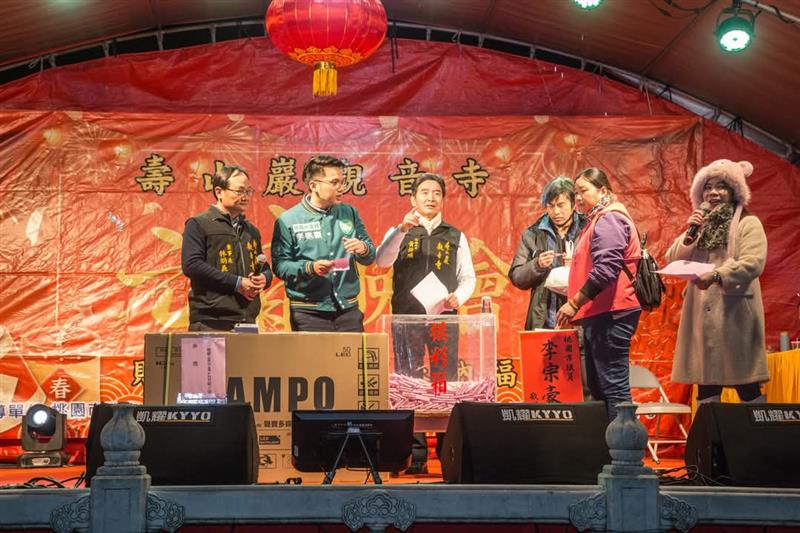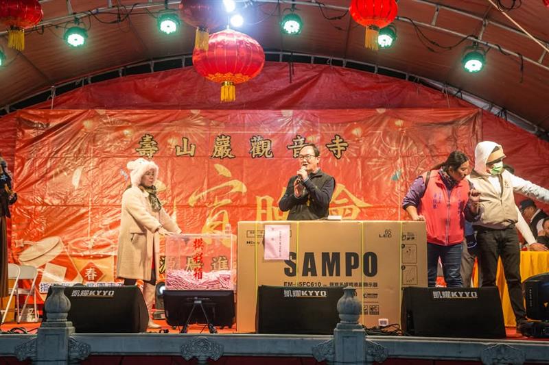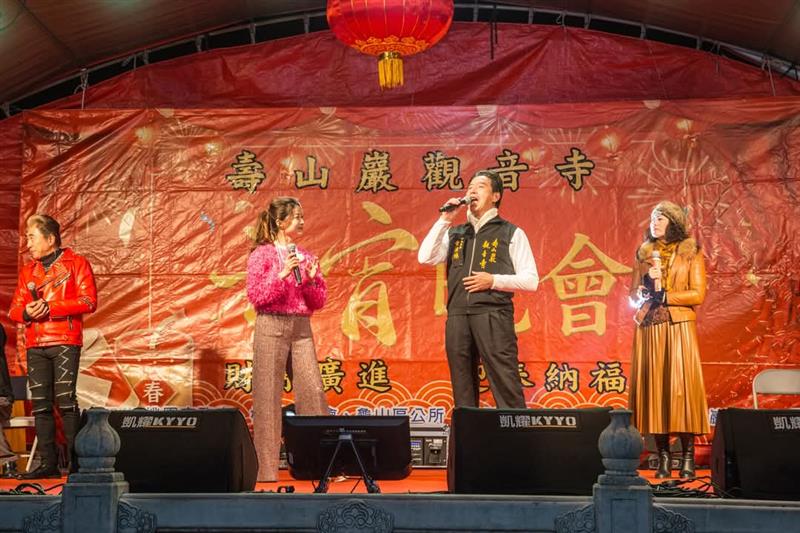 ▲【壽山巖觀音寺】元宵晚會邀請當紅歌星歌唱還有摸彩大小獎數百個獎品非常豐富 (圖:李麗卿提供)