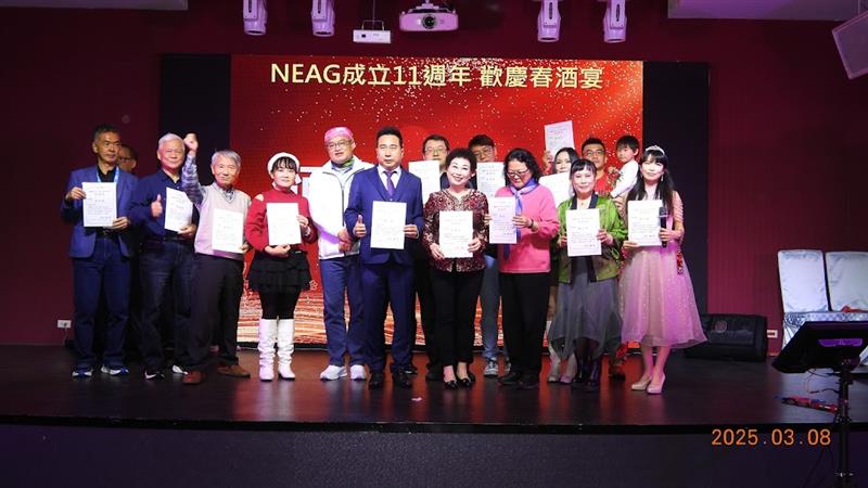 ▲NEAG不要一個人吃飯春酒活動大會頒發謝狀給春酒活動的所有工作人員,感謝大家的辛勞。