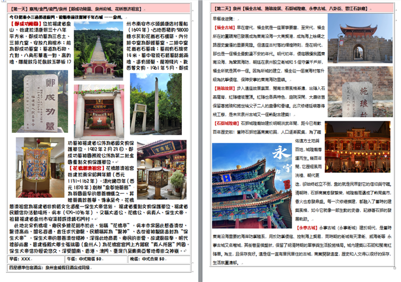 ◆參考旅遊行程(海峽友誼旅行社提供)