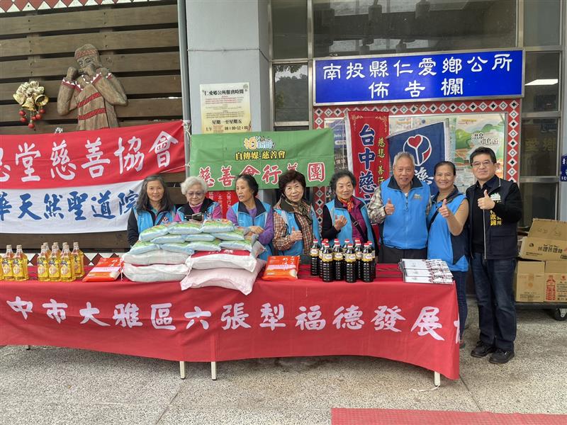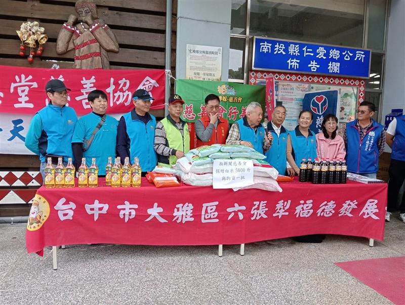 共同舉辦,白米5000斤及民生物資乾糧一批,物資收集在台中倉庫之後,於115年1月23日之前,先將物資雇車運往仁愛鄉公所指定地點存放,於農曆過年前20天發交仁愛鄉公所有社會課收受,在由鄉公所以列冊分發各部落及其他需要的低收入戶領取。