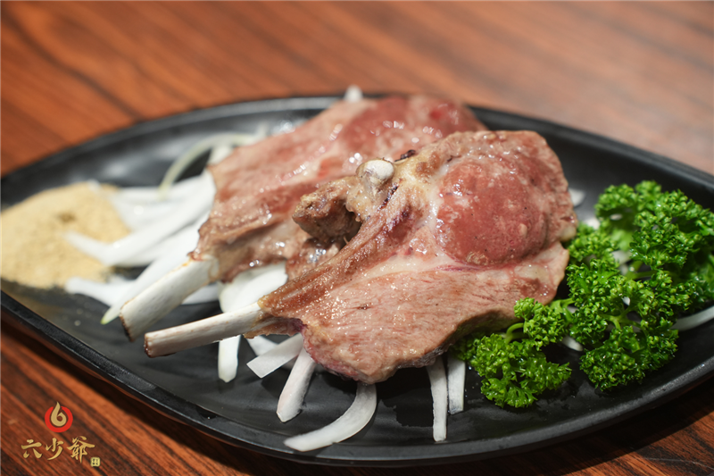 六少爺嚴選厚切羊肩排,經簡單醃製後直接上炭火烘烤,保留肉品原始風味,讓炭香自然滲入肉質。