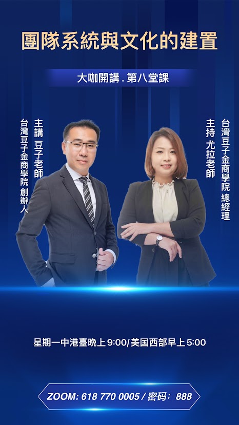 豆子金商業學院——打造創業者的「強大內核」創辦人豆子老師說「豆子變成金,撒豆成兵」,他深信成功的商業模式必須建立在具備競爭力的個人特質與思維邏輯之上。
