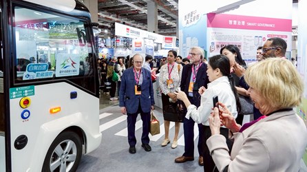 數位局長林谷隆指出,台中展區透過三大領域向全球輸出數位轉型經驗。在「智慧治理」部分,市府積極推動AI Taichung三部曲,健夠完善AI生態系,並展現台中作為全球精密機械聚落的硬實力;「宜居生活」則現場呈現實體自駕巴士,勾勒未來交通藍圖,並展示智慧醫療機器人如何減輕護理負擔,實踐永續醫療;在「永續環境」方面,則透過節能與碳管理整合路燈及毒化物偵測預警系統,強化低碳治理效能並構築城市安全網。