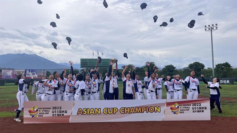 ▲南崁國中女壘隊(豐溢開發…所認養)代表中華民國贏得2023亞洲盃冠軍 打破紀錄第一次打敗日本(圖/彭可拍攝)