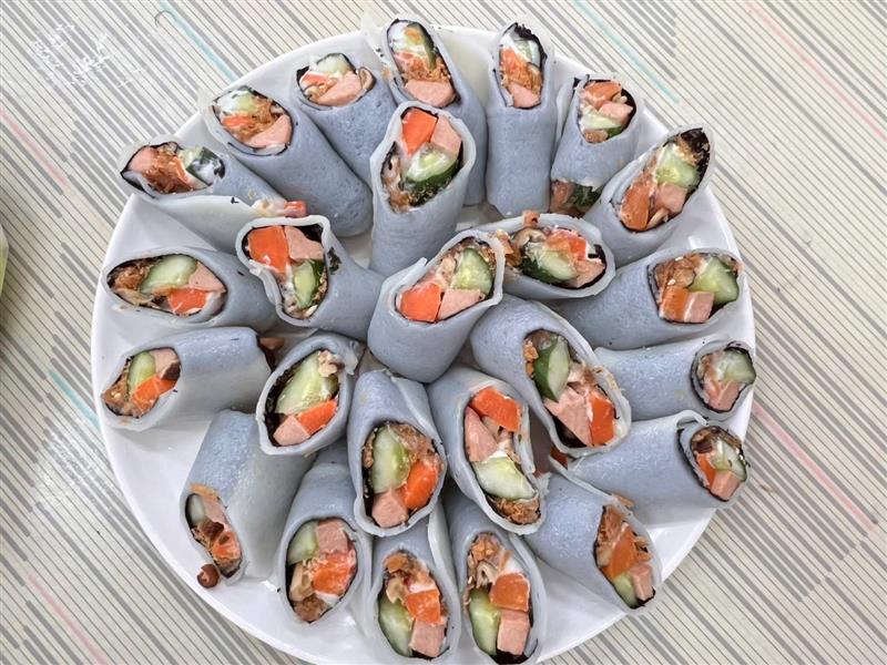 首先,讓我來分享一下白玉卷的口感和味道。這道菜色是以板條和各種新鮮蔬菜製成的卷,外層裹著薄薄的海苔。一口咬下去,板條的QQ口感和蔬菜的清爽甜味充斥口腔,令人回味無窮。我看到院童們吃得津津有味,連一點兒都沒有剩下,顯然也很喜歡這道菜。