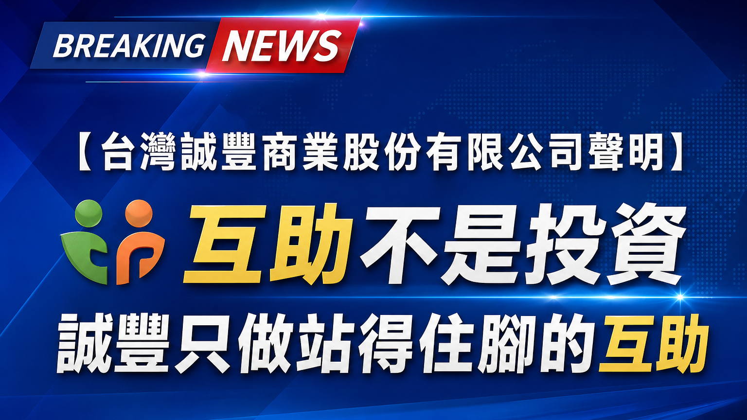 【台灣誠豐商業股份有限公司聲明】 互助不是投資,誠豐只做站得住腳的互助